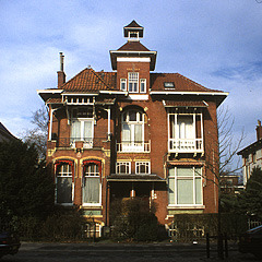 Het dubbele woonhuis aan de Noorderstationstraat is één van de oudste panden in de stad Groningen die de kenmerken van de Art Nouveau draagt.
