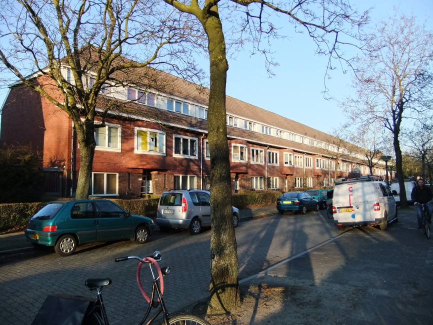 Vanwege het grote aantal woningen werd dankbaar gebruik gemaakt van de herhaling, hetgeen de bouwprijs doorgaans drukt. De hoekbebouwing met een plat dak wijkt daar echter van af. Een reden daarvoor is het markeren van de straat, maar meestal bevond zich hier ook de buurtwinkel.