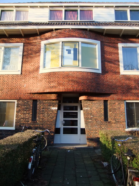 De bebouwing bestaat uit twee lagen en een kap waarbij een woning op de begane grond twee bovenwoningen heeft; het zogenaamde twee-op-een type. Een open portiek zorgt voor de ontsluiting van de bovenwoningen. De gebogen ramen in de gevel benadrukken de trappen op de verdieping. De entree-partijen van de woning vormen een van de opvallendste architectonische onderdelen. Deze zijn op een ambachtelijke wijze ontworpen en zeer rijk versierd. De hoofdvorm zet zich ook door in de tweede bouwlaag.