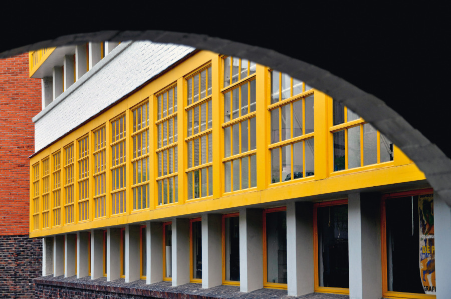 De raamkozijnen werden ontroest, aangeheeld en van nieuwe conserveringslagen voorzien. Bij de restauratie kwam een bijzondere, felgele oude verflaag weer aan het licht. Deze ‘teruggevonden’ gele kleur werd uitgangspunt voor de kleurreconstructie op alle ramen en kozijnen.