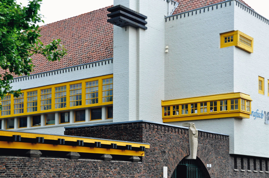 Ook bij het schoonmaken van het schilderwerk op de gevels kwam een oorspronkelijke kleur weer boven: een geelgrijze witte kalklaag. Het interieur van het gebouw is nog steeds authentiek, met crèmekleurige geglazuurde tegels op de wanden van de gangen en de entree.