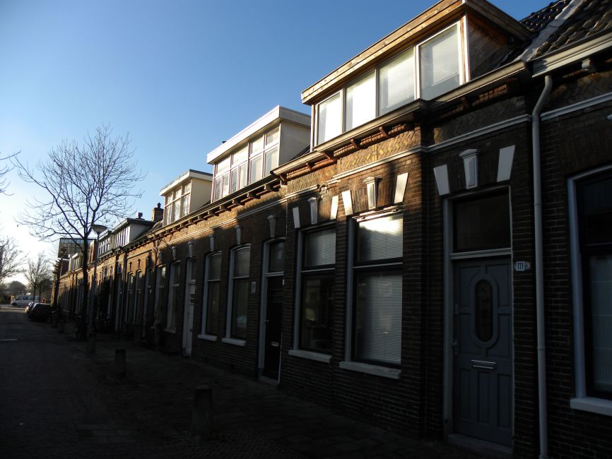 Daarnaast hebben de woningen een zolder en een privaat (toilet) aan de achterzijde. Een voordeur en twee ramen geven het travee (de horizontale afstand tussen twee dragende wanden) per woning aan.