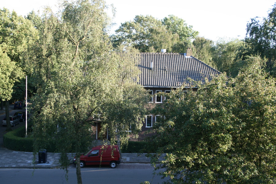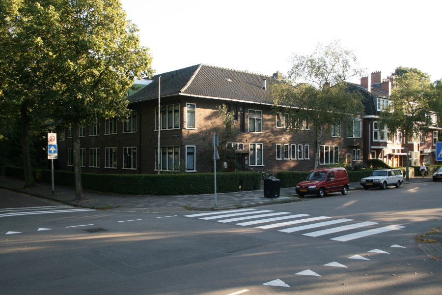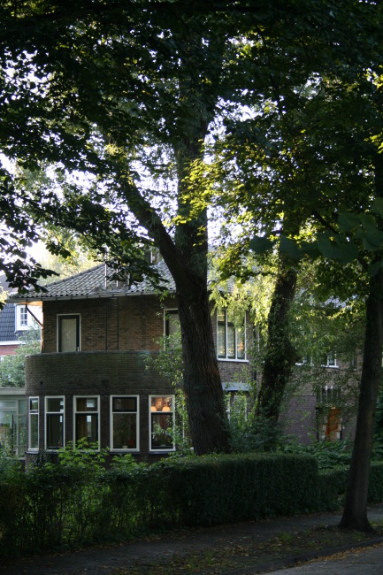 De hoek van de Van Houtenlaan en de De Savornin Lohmanlaan is een scherpe hoek, die alleen ter hoogte van de vensters een subtiele ronding maakt. Boven de vensters en de deuren is een horizontale band van verticaal gemetselde baksteen te zien. Boven deze band is bovendien een andere steensoort gebruikt en springt de gevel iets naar voren; een mooi en ingetogen detail, dat de horizontale hoofdvorm van het gebouw benadrukt.