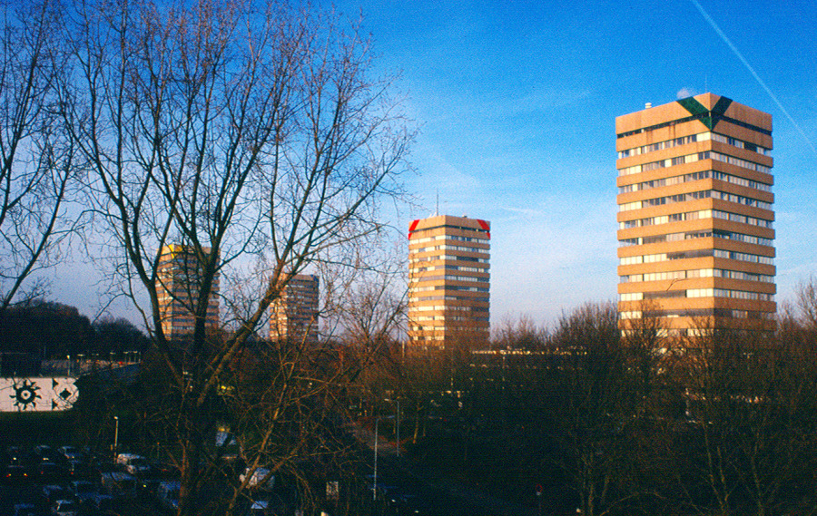 Het complex bestaat uit vier torens, die in dertien jaar tijd (1969-1981) zijn gebouwd. Al snel na de realisatie kreeg elke toren een eigen kleurmarkering bestaande uit diagonale, overhoekse vlakken en neonlijnen. Ze zijn gebouwd in de volgorde groen, rood, blauw en geel. Ook al lijken de torens identiek, qua oppervlakte zijn er verschillen. De twee torens op het Engelse Kamp (achter de Dr. S. van Mesdagkliniek) hebben namelijk een oppervlak van 20 bij 20 meter en de andere twee zijn 22,5 bij 22,5 meter.