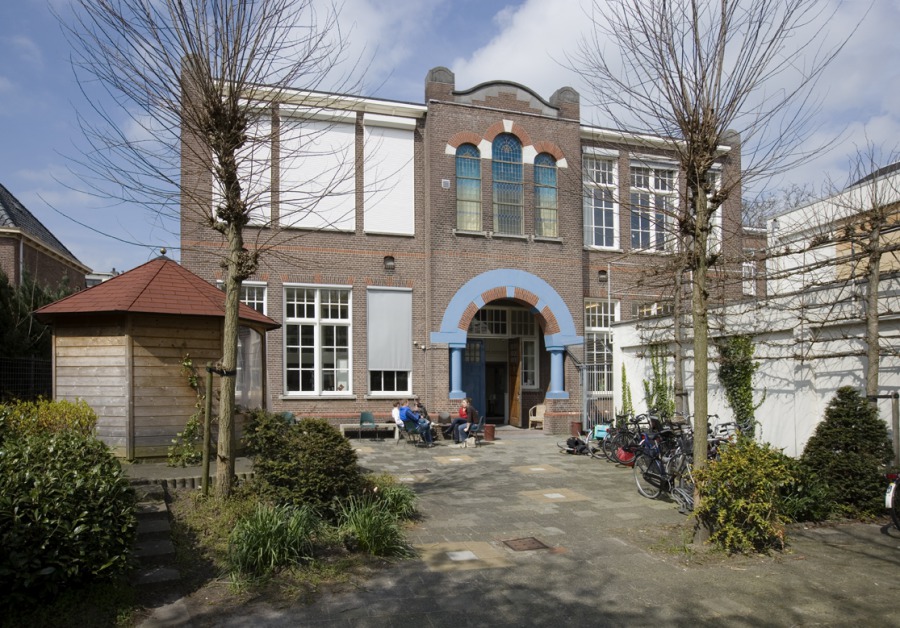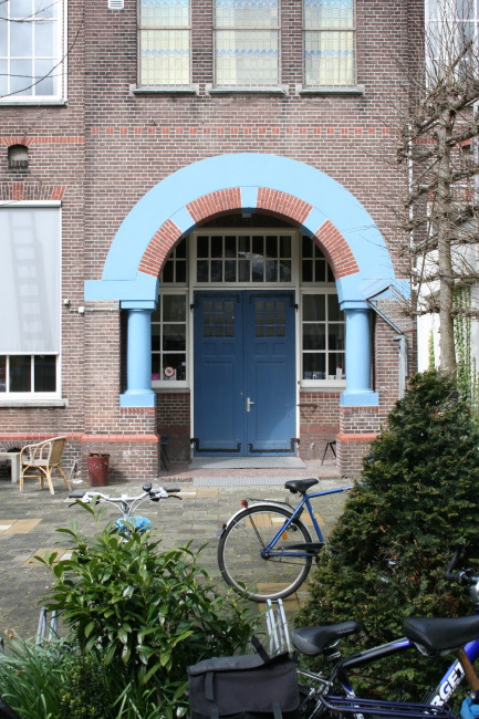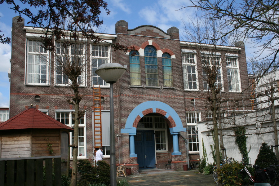 Het relatief kleine schoolgebouw kent een klassieke opbouw met een entree in het midden en lokalen aan weerszijden. Het gevelvlak van de entree springt iets naar voren en wordt aan de bovenkant afgesloten door een lichtgebogen, met hardstenen aangezette daklijst. De hoeken steken boven de daklijst uit en worden geaccentueerd door hardstenen toppen, met dezelfde lichtgebogen vorm. De entree ligt iets terug en wordt benadrukt door een prachtige dubbele rondboog van zowel hard- als baksteen. Erboven prijken drie rondbogige glas-in-lood-ramen. Het gebruik van rondbogen, hardstenen accenten en de vlakke, subtiel gedecoreerde, bakstenen gevels doen denken aan de architectuur van de beroemde Amsterdamse architect H.P. Berlage.