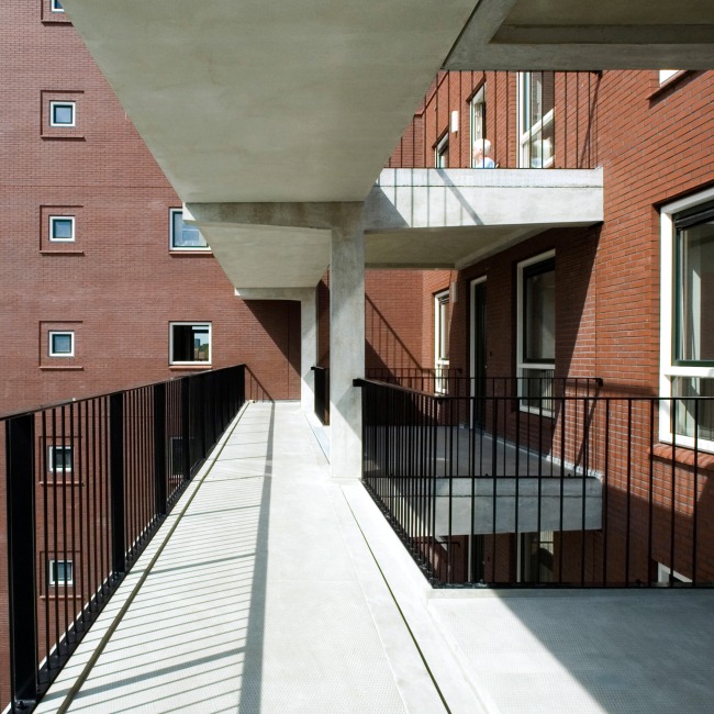 Binnen het bouwblok zijn verschillende gebouwen te onderscheiden, elk met specifieke woningtypen. Ieder woningtype is vanuit de specifieke locatie in het blok, het verschil in uitzicht en bezonning ontwikkelt. De woningen zijn binnen het grote geheel te onderscheiden door grote balkons en met een ligusterhaag omzoomde voortuinen.