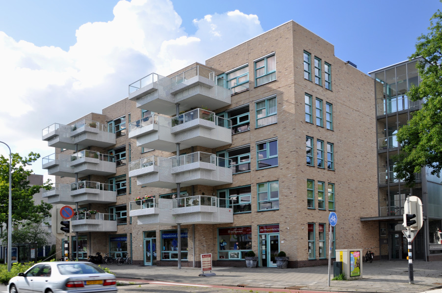 De nieuwbouw op de hoek van de Eikenlaan en Elzenlaan, twee belangrijke verbindingsroutes op respectievelijk stads- en wijkniveau, voegt zich nadrukkelijk naar de bestaande bebouwingsstructuren in de naoorlogse wijk Selwerd. Samen met de bestaande galerijflats en eerder uitgevoerde wijkvernieuwingsprojecten vormt het een groot stedelijk blok. Daarbij markeren de beide gevelwanden de verbindingsroutes. De hoek wordt daarbij extra aangezet met een vijf lagen hoog appartementenblok met daaronder een bedrijfsruimte.