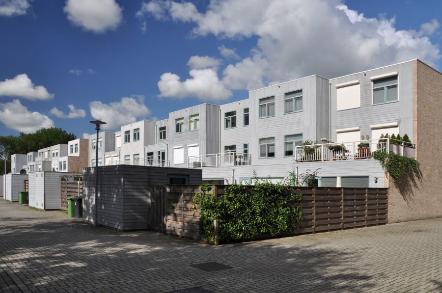 In aansluiting op het gemeenschappelijke karakter van het voorgebied, is de gevelwand uniform vormgegeven en opgetrokken uit mergelkleurig metselwerk. Als bindend element dient een doorgaande luifel. Op de tweede en derde laag zit meer variatie waardoor ritme ontstaat in de gevel. De achtergevels kennen een tweeledige opbouw: een vlakke, uitgebouwde begane grond met daarbovenop de teruggelegde en onderling verspringende etages. Aan de achterzijde is bovendien ruimte gelaten voor uitbreidbaarheid van de woningen. Ontsloten vanuit een binnenstraat zijn alle woningen voorzien van een parkeerplek op het binnenterrein.