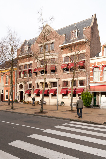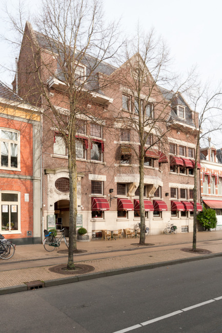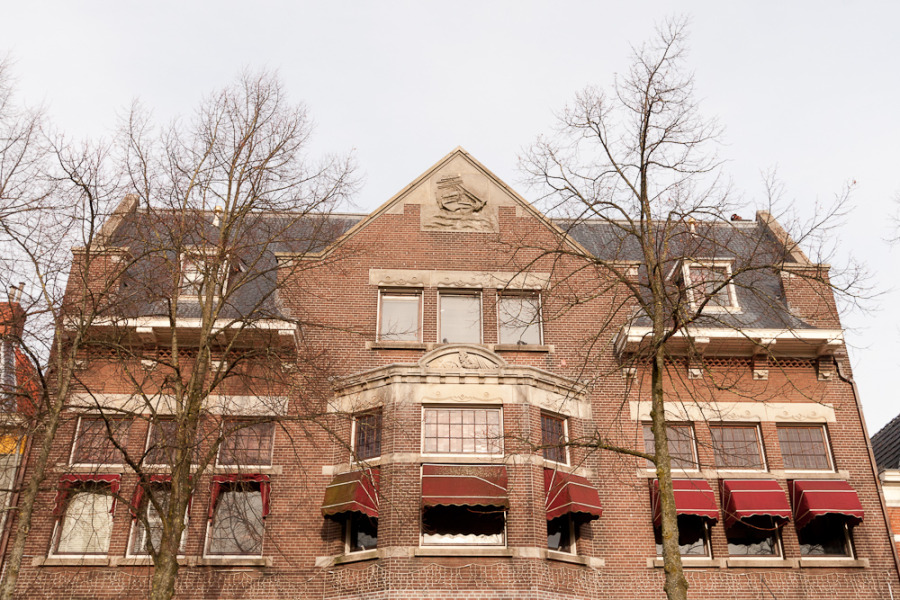 Het pand heeft een statige uitstraling gekregen door de zorgvuldige keuze van bouwmaterialen en de fraaie ambachtelijke uitvoering. Zo is het opgebouwd uit paarsbruine baksteen, met een plint van graniet. Leistenen in plaats van dakpannen bedekken het dak. Het bijna symmetrisch opgetrokken pand heeft op de as van de symmetrie op de eerste verdieping een grote trapeziumvormige erker gekregen. Deze wordt ondersteund door twee zandstenen consoles en bekroond door een reliëf waarop een stuurman aan het roer staat.
