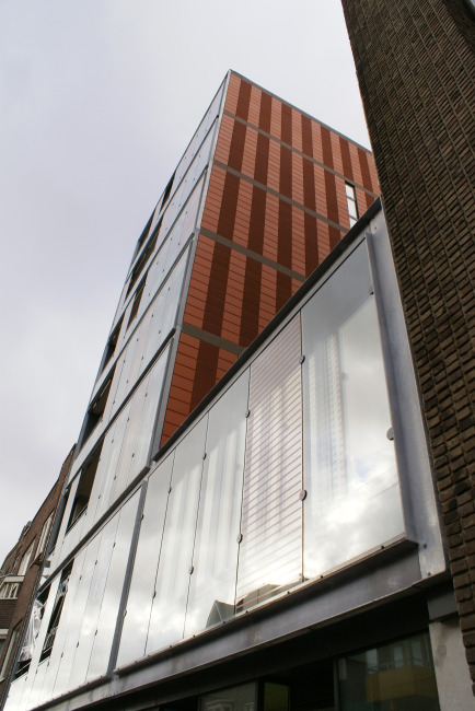 De westelijke zijgevel van dit naastgelegen gebouw is voorzien van daglichtopeningen; dat verklaart de lichthof tussen beide bouwblokken en is daardoor een bepalende factor voor de massaopbouw van het plan. De oriëntatie en de hoogte van de bouwvolumes sluiten aan bij de aangrenzende bebouwing. Hierbij zijn de bestaande, historisch bepaalde rooilijnen gevolgd waardoor de kenmerkende draaiing in de plattegrond ontstaat.