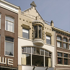 Huurman kwam met een plan dat in geen enkel opzicht verwijst naar het oorspronkelijke gebouw. Volgens de principes van de Jugendstil ontwierp hij een helder gebouw met veel glas, gebaseerd op een rechthoekige plattegrond. In de gevel gebruikte hij witte verblendsteen, waarbij natuursteen op een gedoseerde manier is toegepast en bewerkt. Deze steensoort zien we ook terug bij de kleine ronde, maar opvallende erker. Ook is dit materiaal als afdekking van de tuitgevel gebruikt. Dit gevelfragment is iets teruggelegd, waardoor er ruimte is ontstaan voor een balustrade.