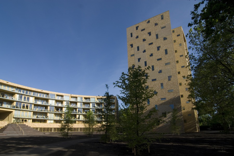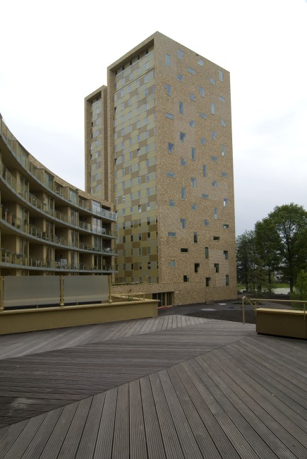 In de uitwerking van de architectuur is gekozen voor een laag slingerend deel en een hoge toren. De Toren telt 17 lagen en heeft een bijzondere plattegrond die in hoge mate bepaald wordt door de geluidbelasting van de verderop gelegen ringweg. In de toren zijn 51 koopappartementen gerealiseerd: drie op elke verdieping. Op de begane grond bevinden zich de bergingen. De appartementen liggen rond een hal met twee liften en een trappenhuis. De oppervlaktes verschillen van 122 tot 161 m2, inclusief de serre. De appartementen hebben een wegschuifbare gevelpui en een glazen vouwwand in de woonkamer: zo kan in de winter gekozen worden voor een extra ruime woonkamer en in de zomer kan een serre worden gecreëerd door het openen van de gevelpui en het sluiten van de glazen vouwwand.