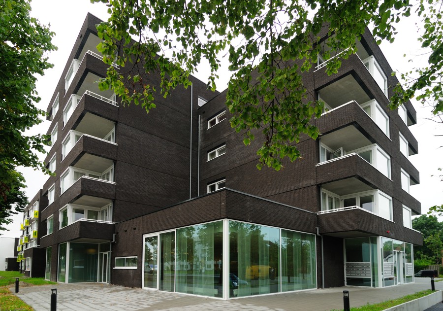 Het overige deel van het gebouw is gestript tot op de woning-scheidende wanden en de vloeren. Rondom zijn compleet nieuwe gevels aangebracht waardoor het gebouw een totaal andere uitstraling heeft gekregen. Ondanks de smalle beukmaat zijn toch ruime appartementen gerealiseerd. De keukens zijn gesitueerd aan de gangzone en voorzien van een kozijn tussen het aanrechtblad en de bovenkastjes, waardoor er naast lichttoetreding in de gang ook contact met medebewoners kan zijn.