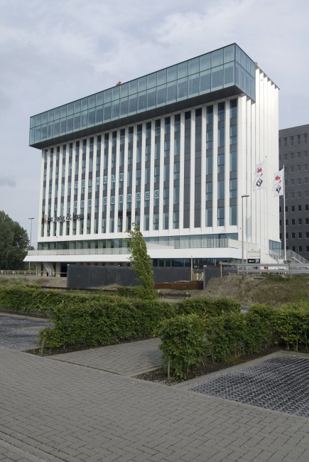 De collectieve ruimten zoals entree, wachtruimten en bedrijfsrestaurant hebben een open en transparant karakter gekregen. Kenmerkend voor het gebouw is een grote uitkraging, gericht op de stad, op de bovenste verdieping van dit ‘villakantoor’.