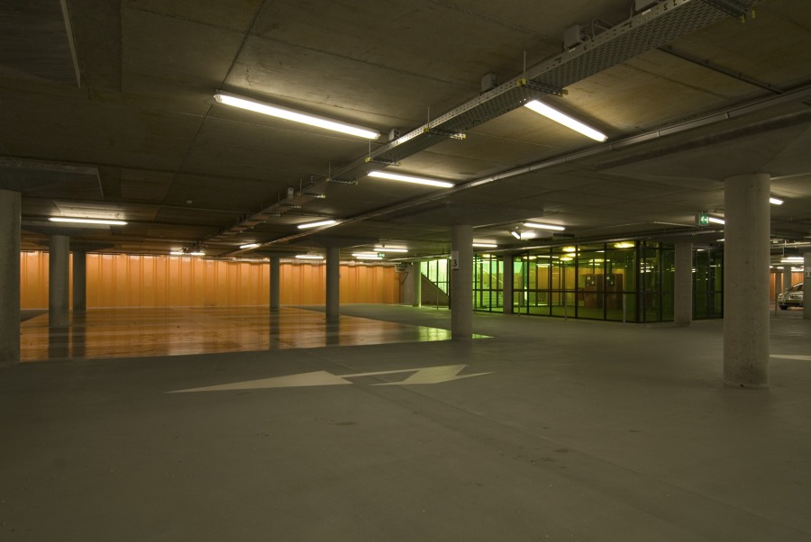 De parkeergarage is een ontwerp van DAAD Architecten. De drie publieke toegangen zijn in samenspraak met de architecten van de (toekomstige) gebouwen erboven ontworpen: De Zwarte Hond, Dok Architecten en hvdn architecten.