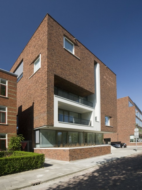 De parkeergarage ligt half onder de grond en zorgt ervoor dat het huis op een sokkel staat met een mooi uitzicht op de straat, de groene Gorechtkade en de omliggende huizen.