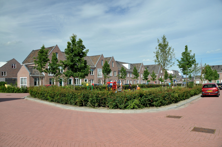 Bij de inrichting van de straten is, in overleg met de gemeente, gekozen voor het informele ‘dorpse’ model. De voortuinen zijn vijf meter diep, met uitzondering van de vrijstaande woningen op de hoek, die daarmee juist de hoek markeren. Deze laatste hebben drie meter diepe voortuinen en worden afgebakend door een doorgaande hagenstructuur. Deze tuinen zorgen voor het groene, landelijke beeld dat Mulleners + Mulleners voor ogen had.