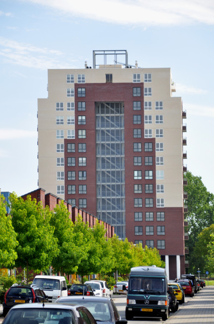 De woontoren telt 56 appartementen waaronder 6 penthouses, verdeeld over 15 bouwlagen. Tevens zijn haaks op deze toren in noordwestelijke richting 8 geschakelde herenhuizen ontworpen, met woonkamers gesitueerd op de eerste verdieping en een bijbehorend, royaal uitzicht. In verschijningsvorm en tweeledige kleurstelling vormen de woningen een overgang naar de toren.
