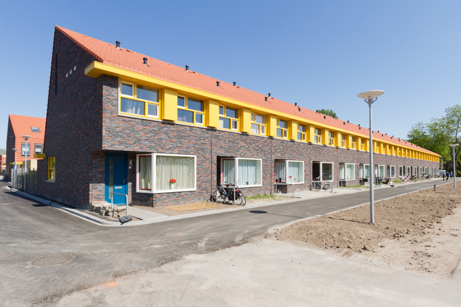 Op de locatie van het voormalige Oosterparkstadion ontstaat een nieuwe woonwijk: De Velden. Het totale plan is verdeeld in 5 deelplannen, die door verschillende Groninger architecten zijn ontworpen en onderling op elkaar zijn afgestemd. Het deelplan Middenveld is gerealiseerd naar een ontwerp van WAL Architecten. De opgave betrof de realisatie van 28 huur- en 27 koopwoningen in het betaalbare segment. Om ruimtelijkheid binnen het gesloten bouwblok te verkrijgen, dienden de woningen een kap te hebben. Volgens de karakteristieke kwaliteit van de Oosterparkwijk zijn de straten zó vormgegeven dat bewoners verleid worden deze openbare ruimte te gaan gebruiken. Door verschillende metselwerktoepassingen, afwisselende dakhellingen met dezelfde dakpannen, identieke gootprofielen op verschillende hoogtes, repeterende ramen en afwijkende kozijnvormen ontstaat eenheid in verscheidenheid. Zo wordt aansluiting gevonden bij de bestaande Oosterparkwijkarchitectuur – die grotendeels stamt uit de jaren ’20 en ’30 van de vorige eeuw - die rijk is aan detail en plasticiteit en toch samenhang vertoont. Voor bezonning is er onderscheid gemaakt tussen wonen aan de straat op de zon en wonen aan de tuin op de zon. De straatgevels hebben programmatisch een ander karakter waardoor twee totaal verschillende straatwanden ontstaan; introvert op het noorden en extravert op het zuiden.
