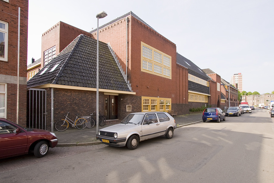 Dit gebouw aan de Jan Hissink Jansenstraat was het eerste schoolgebouw dat de architect S.J. Bouma ontwierp. In tegenstelling tot zijn latere ontwerpen maakt het volledig deel uit van de straatwand en ligt het ingebed in de bebouwing. Het pand heeft twee nummers omdat het gebouw oorspronkelijk onderdak bood aan twee scholen: het was een zogeheten dubbelschool.