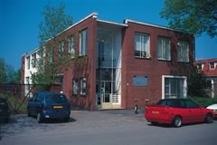 In 1952 verhuisde loodgietersbedrijf Wijma en Grol (het latere Aquatherm) van de Kerklaan naar de Paradijsvogelstraat. Blijkbaar een feestelijke gebeurtenis want het gezamenlijk personeel liet, als cadeau aan de directie, een afbeelding van een loodgieter uitslijpen in de enorme glaspartij die een groot deel van de voorgevel beslaat. Het uitslijpen werd uitgevoerd door Groninger Glasindustrie, een glasbedrijf dat toentertijd was gevestigd in de Grote Appelstraat. De heroïsche voorstelling van een werkende loodgieter maakt vandaag de dag nog steeds grote indruk.