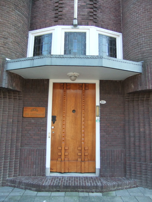 De expressionistische gevel is ontworpen in de trant van de Amsterdamse school. Drie forse, uitgemetselde pilaren in de voorgevel sieren het pand. Waarschijnlijk symboliseren deze de opvattingen van de Odd Fellows.