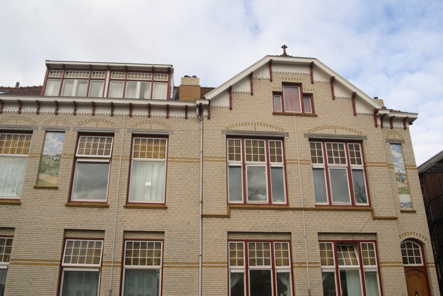 De gevelwand aan de Noorderhaven heeft een topgevel gekregen. Hier ligt ook de entree op de begane grond. De vormgeving van de zijgevel is minder uitbundig. Alle vensters zijn diep in het muurvlak geplaatst waardoor reliëfwerking is ontstaan. De ontwerper heeft het gebouw zorgvuldig ontworpen en veel aandacht geschonken aan de materialen en de verwerking daarvan. Zo is er witte verblendsteen toegepast, maar ook geglazuurde gele stenen en natuursteen.