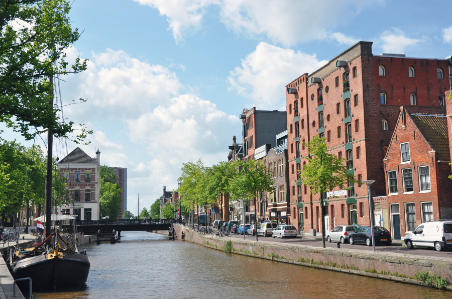 Daarbij had het middelste deel een topgevel en werden de pakhuizen aan weerszijden aan de bovenzijde afgesloten met een forse lijst waarachter zadeldaken schuil gingen en driehoekige trijshuisjes uitstaken. In 1910 werd het linker pakhuis, dat lang bekend stond onder de naam Friesland, met anderhalve verdieping verbouwd en opgehoogd. Vermoedelijk kreeg dit deel - waarschijnlijk na een brand - in de jaren ‘30 van de vorige eeuw ook een nieuwe gevelbekleding,. De gevel werd bekroond met een opengewerkte gemetselde balustrade.