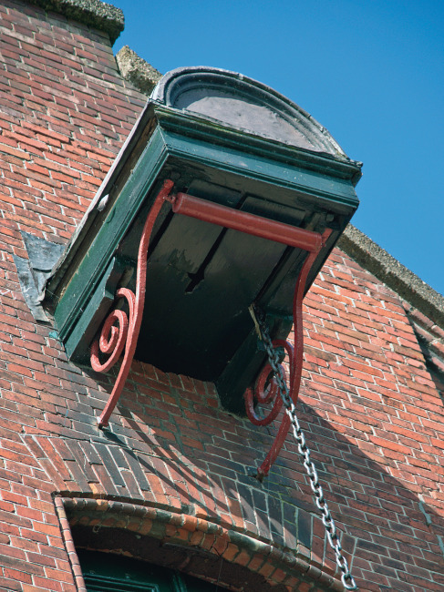 De gevelopeningen van ramen en deuren zijn segmentboogvormig gesloten. In de bovenste verdieping zijn rozetvensters aangebracht. Alle ramen zijn van ijzer en hebben een roedeverdeling. Bij de onderdorpels en op andere plaatsen zijn tandlijstjes gemetseld. De zijgevel aan de Speldemakersgang bevat op de verdiepingen reeksen van telkens vier gietijzeren taatsramen.