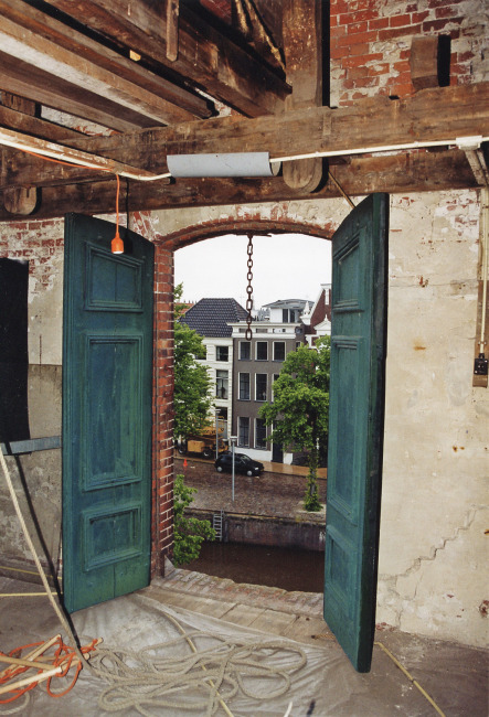 De begane grond bevatte - van voor naar achteren - onder andere een breed houten raamkozijn van het vroegere kantoor, twee kleinere ramen en twee gietijzeren taatsramen. De balklagen zijn in de gevel gemarkeerd met reeksen ijzeren muurankers.