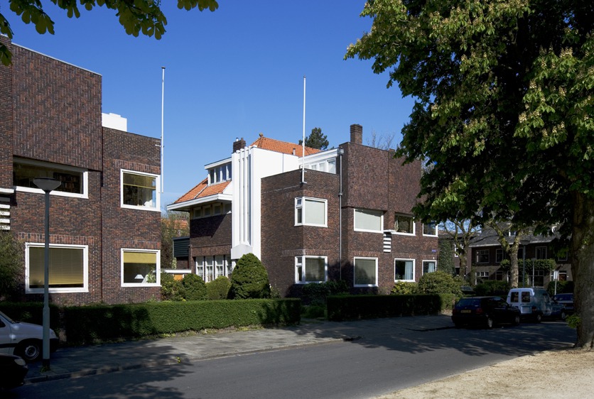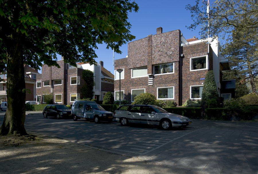 De villa’s van Bruins zijn symmetrisch van opbouw en worden gekenmerkt door bijzonder levendig en bijna impressionistisch metselwerk in een donkerbruine steen. De toegang in de zijgevels wordt benadrukt door een expressief verticaal betonnen gevel met lange vensterstroken. Markant is de toepassing van twee totaal verschillende daken. Terwijl de villa’s aan de voorzijde een plat dak hebben, worden ze aan de achterzijde gekenmerkt door een ouderwets schilddak. Vanuit de tweede verdieping is er aan de voorkant toegang tot het dakterras. Het geprononceerde gevelvlak met metselwerk in sierverband hangt als een soort ‘frons’ boven de ramen van de eerste verdieping.