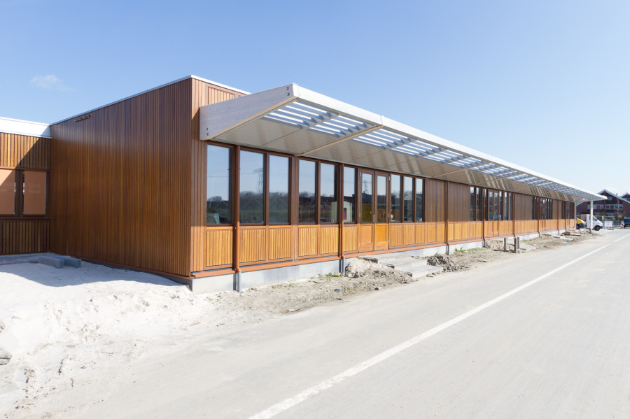 Het complex is opgetrokken uit duurzaam hout en heeft daarmee een warme en kindvriendelijke uitstraling. Grote aandacht is besteed aan duurzaamheid en het binnenklimaat, dat in ieder lokaal afzonderlijk geregeld kan worden, zowel temperatuur als ventilatie. Het dak is bekleed met sedum, dat isoleert en regenwater opvangt, vogels en vlinders aantrekt en tegelijkertijd de buurtbewoners een groen uitzicht teruggeeft.