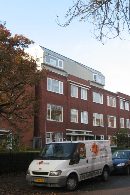 In de wijk Helpman zijn twee naast elkaar gelegen bovenwoningen uitgebreid met een extra slaapverdieping. De bovenwoningen maken deel uit van een karakteristiek jaren 30 blokje beneden- boven- woningen aan de Helper Weststraat.