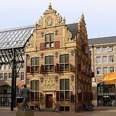 Het pand werd gebouwd in renaissancestijl, waarbij de beeldhouwer van de gevels met een schuin oog gekeken zal hebben naar het ‘huis Panser’ aan de oostzijde van de Grote Markt. Omdat zijn gevel sinds de oorlog de oorspronkelijk dode zuid-zijde van het Goudkantoor siert, is vergelijking nu goed mogelijk.