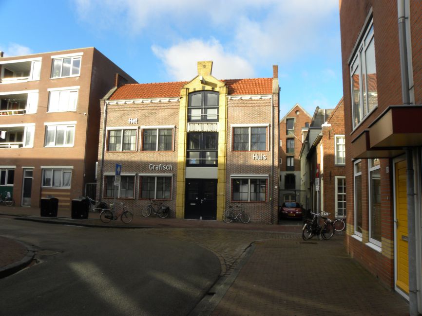 Het bedrijfspand is gebouwd op het perceel van twee afgebroken, 19e eeuwse bedrijfspanden in de binnenstad van Groningen, naar een ontwerp van architectenbureau Klein te Groningen.