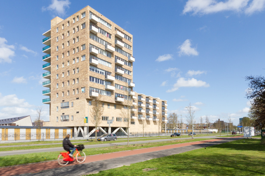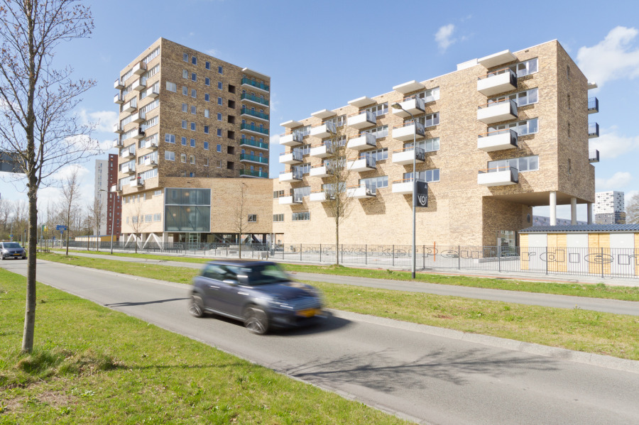 De koopappartementen zijn in de woontoren (drie woningen per laag) ondergebracht, de huurwoningen in het lagere blok.