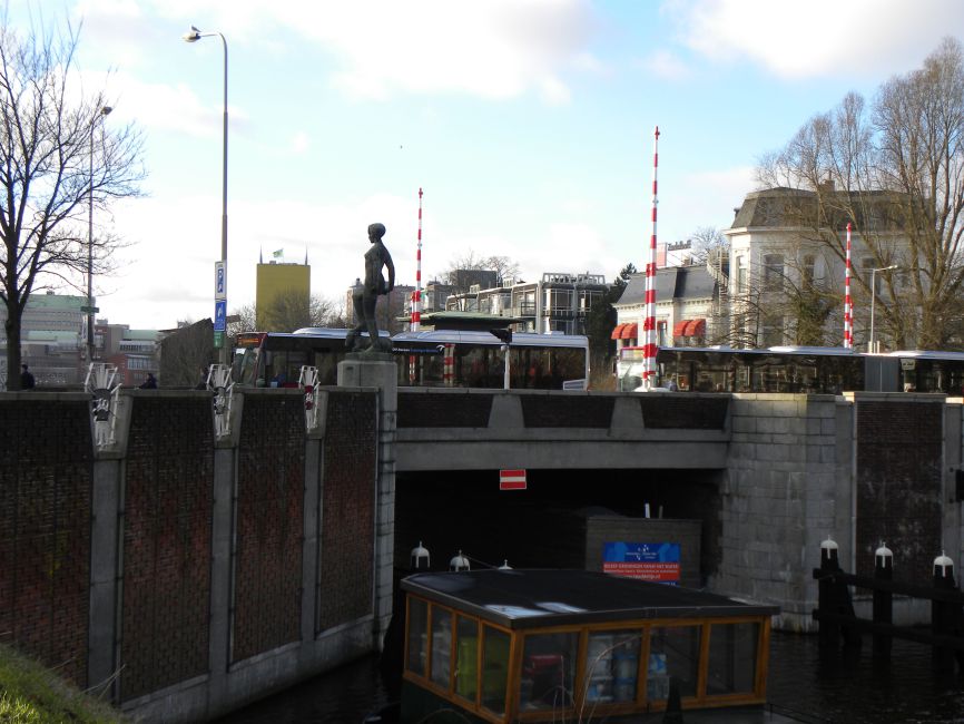 Het definitieve ontwerp heeft een volwassener uitstraling. Het beeld werd in december 1953 op de Herebrug geplaatst ter gelegenheid van de opening van de nieuwe brug. Bij het opheffen van het trolleybusnet zijn de bovenleidingen en masten verwijderd. In 1988 werd de brug door de Dienst Ruimtelijke Ordening gerenoveerd en versterkt.