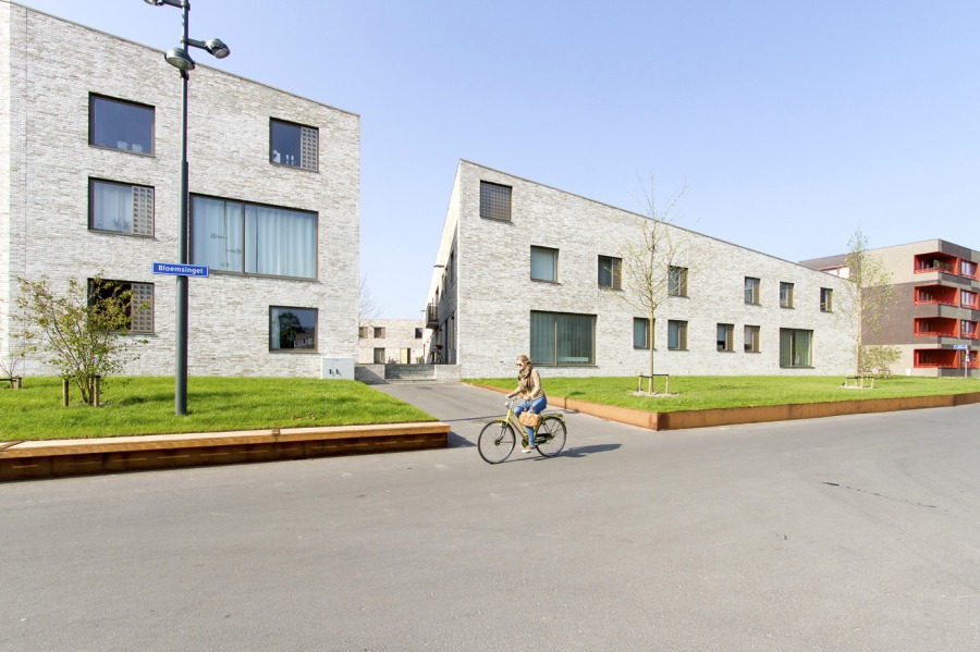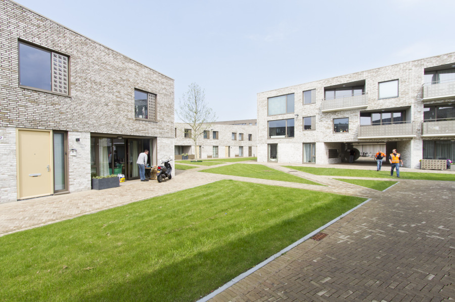 De vier blokken vormen een ensemble door toepassing van dezelfde kleur baksteen. Deze steen is ook voor de trappen naar de openbare ruimte gebruikt. Door de smalle toegangen tot de binnenruimte voelt de bezoeker zich beschut. Het merendeel van de voordeuren is aan de openbare binnenruimte geplaatst.