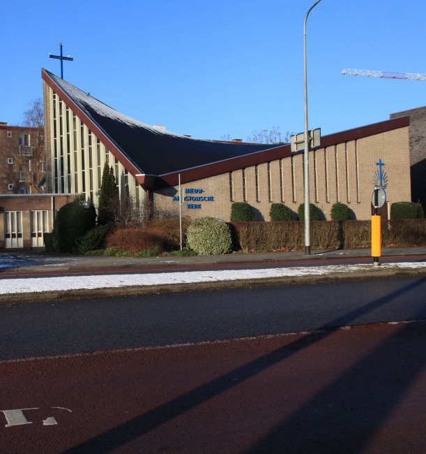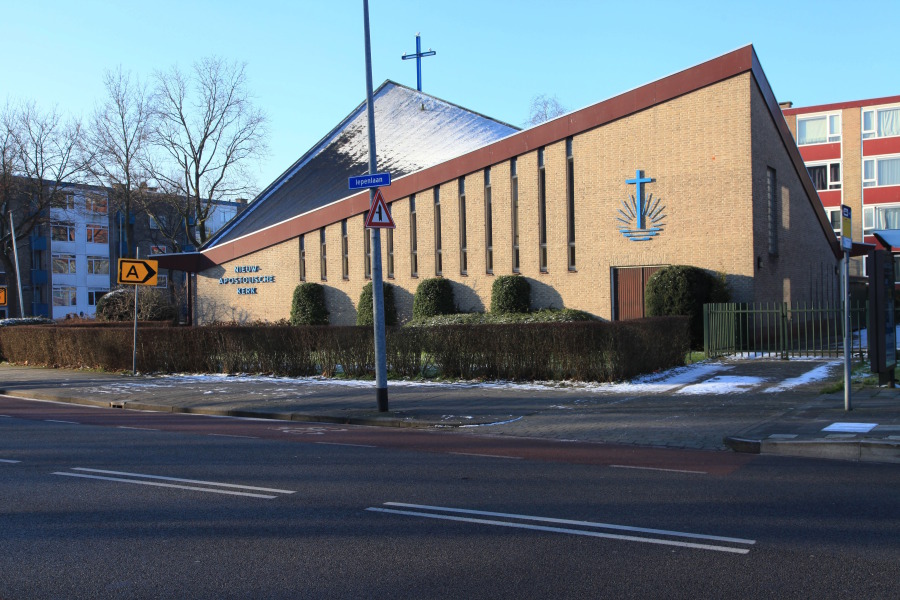 De Eikenlaan in westelijke richting afrijdend is in de knik een gebouw met een bijzondere silhouet te zien: twee hoogtepunten met daartussen een holle contour. De uitzonderlijke massavorm doet al vermoeden dat het een kerk is. Een kruis op het hoogste punt aan de kant van de Eikenlaan bevestigt dit. De situering op de hoek van de Iepenlaan zorgt voor een overhoeks aanzicht. De ontwerper heeft daar goed op ingespeeld. Het dak overspant een eenvoudige, rechthoekige kerkzaal van ongeveer 19 bij 13 meter. De oorspronkelijke opdrachtgever uit de tijd van de bouw van de wijk heeft het nog steeds in gebruik.