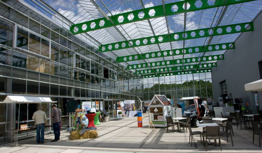 De gevel van het verzamelgebouw is geïnspireerd op de kassenbouw en de glazen geveldelen zijn op vele plekken te openen. Zo ontstaat een transparant gebouw met informele entrees en, waar gewenst, interactie tussen binnen en buiten.