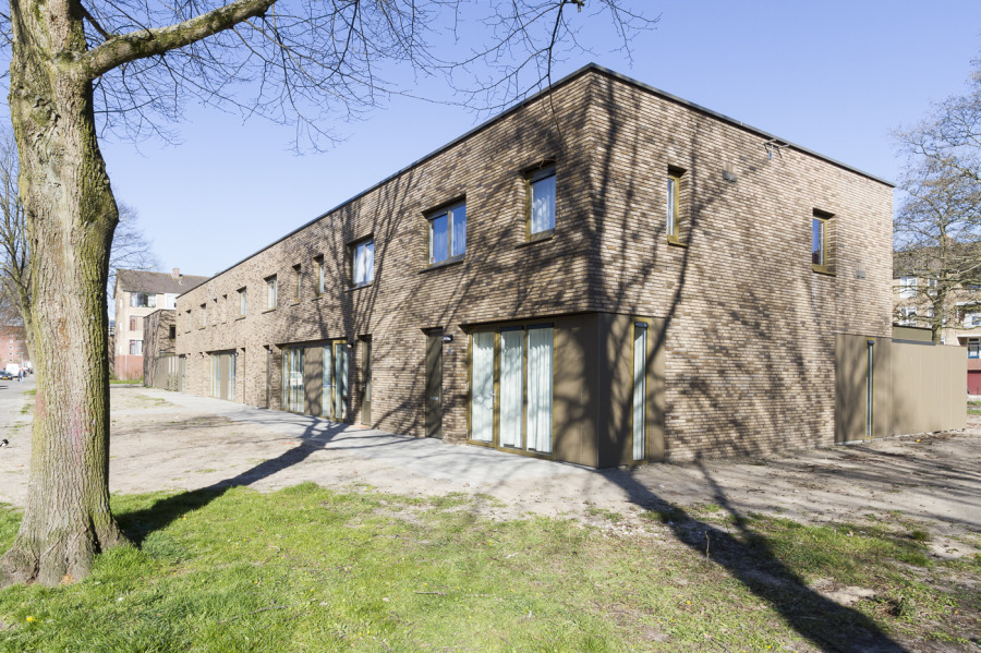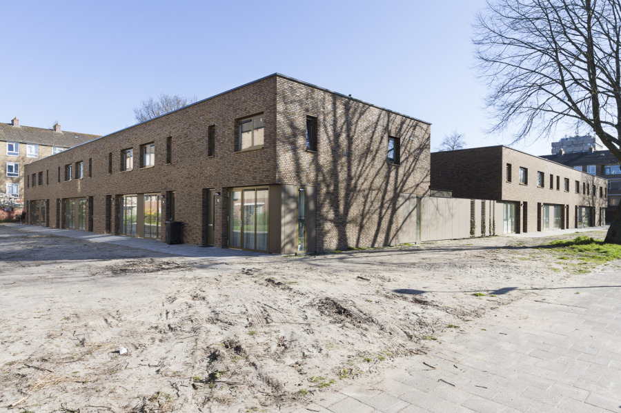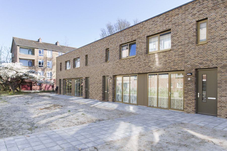 De grondgebonden woningen zijn gegroepeerd rondom de binnentuinen. De bergingen zitten in een uitbouw aan de achtergevel. De laagbouw zal worden voorzien van een groendak voor een prettigere aanblik vanuit de omliggende portieketagewoningen.