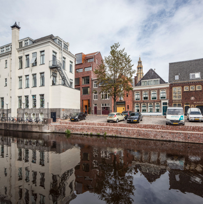 Functioneel vormt deze nieuwbouw een eenheid met het tweede pand in de Brugstraat (no 28). Het complex sluit het hoekpand aan de Kleine der A en de Brugstraat (no 30) in. De nieuwbouw bestaat uit vijf bouwlagen, maar verschuilt zich achter het pand langs het water. De hoge begane grond sluit aan op de winkelruimte in de Brugstraat 28. De hoogte zorgt ook voor voldoende lucht en licht in de steegsituatie aan het Kleine der A. De vier verdiepingen met appartementen hebben een standaardhoogte.