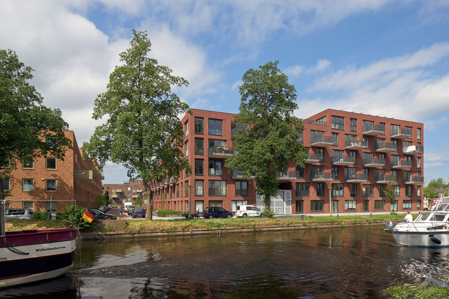 Als derde is het grootste bouwblok van het plan gerealiseerd. Het is een rechthoekig blok dat met de ene kop aan het Winschoterdiep grenst en met de andere kop aan het centrale pleintje. De hoogte trapt van zes bouwlagen aan de noordoost kant naar drie bouwlagen in noordwest hoek. Zuidwand en noordwand zijn verschillend. Onder het hele blok, inclusief de binnenhof, ligt een gesloten parkeerlaag.