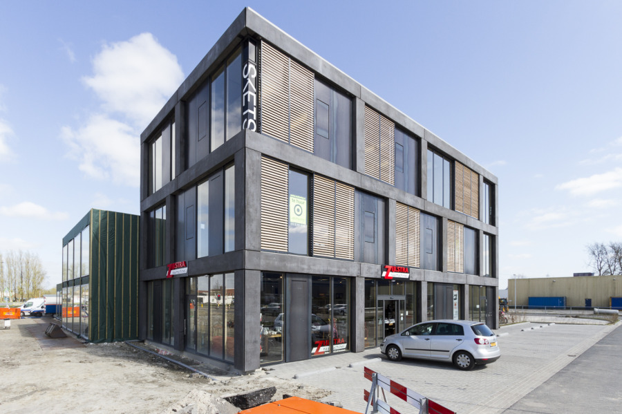Het ontwerp is zo opgezet dat het in de toekomst met een extra 600 m2 in zuidelijke richting kan worden uitgebreid. De ontsluiting is aan deze kant gerealiseerd, zodat de eventuele uitbreiding dan gebruik kan maken van dezelfde trap en lift. Als gevelmateriaal is aan de zuidkant daarom een eenvoudige staalplaat gekozen. Later kan dit worden vervangen of er tegenaan worden gebouwd. Ook de oostzijde – met aangrenzende bedrijfshal – is op deze wijze vormgegeven.