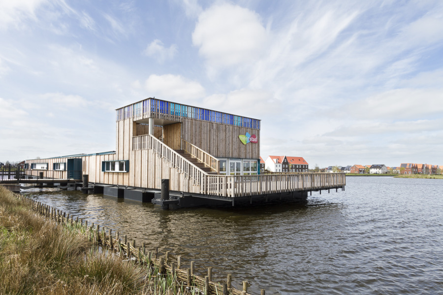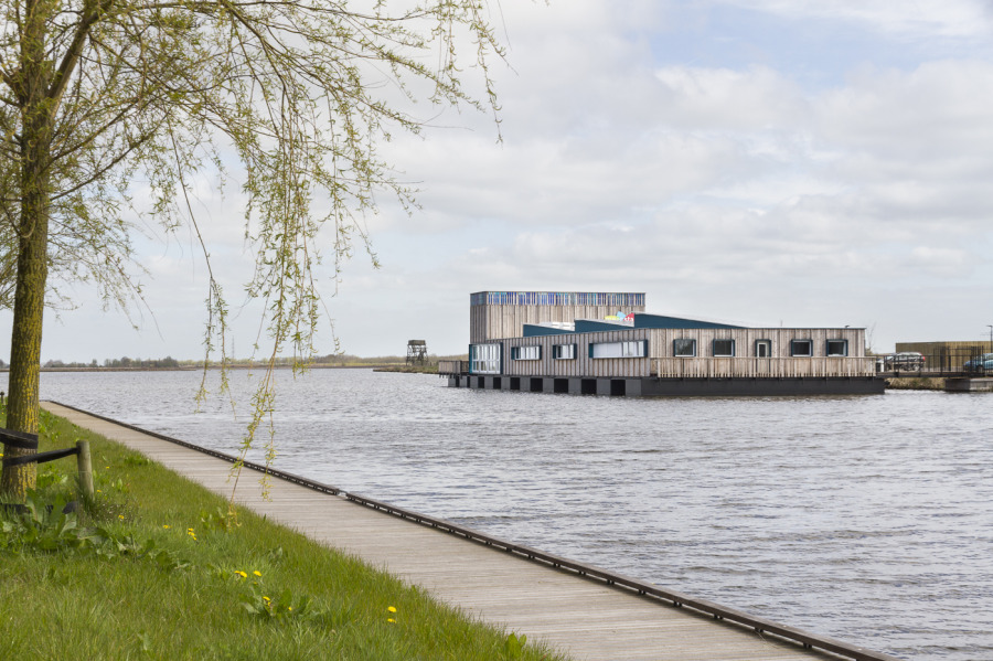 Het gebouw biedt huisvesting aan een kantoorruimte, verkoopcentrum, publiek toegankelijk terras, tribune en een uitkijkpunt op het dak. De accommodatie van ca. 750 m2 BVO is opgebouwd als modulair bouwsysteem, oftewel prefab-units, geplaatst op drijvende pontons.