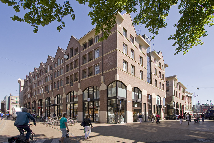 Het complex bestaat uit drie verdiepingslagen op een grote onderpui, onder platte daken of zadeldaken en is opgebouwd uit metselwerk, prefab- betonelementen gecombineerd met natuursteen, kunststeen, glas en koper. Kenmerkend voor de traditionele vormtaal van de bebouwing zijn de topgevels aan de zuid- en westzijde, de segmentbogen, de forse sluitstenen en speklagen en de hoge ramen met roedeverdeling.