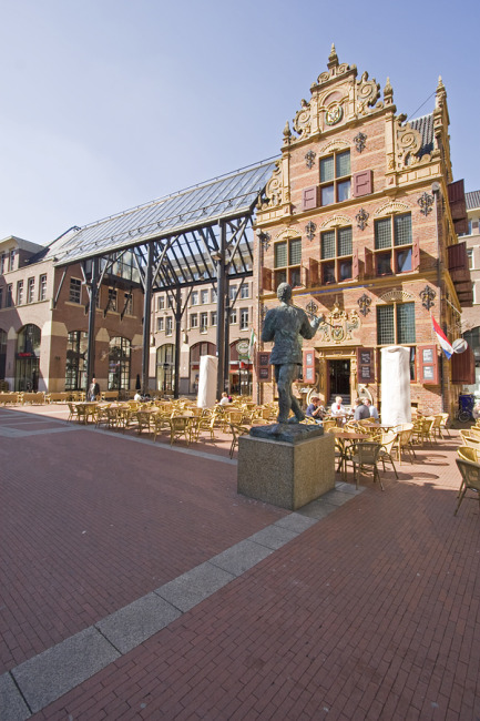 Een glazen luifel verbindt het oude Goudkantoor met de nieuwbouw en biedt tegelijkertijd beschutting voor de terrassen van het Grand Café en het restaurant in het Goudkantoor. De overdekte ruimte wordt gebruikt als podium voor muziek. Onder de luifel hangen sculpturen van de Ierse beeldhouwster Janet Mullarney, genaamd ‘Si faranno largo’.
