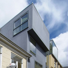 De vierde laag van de nieuwbouw oriënteert zich op het westen. De overige drie lagen zijn gericht op de straat.