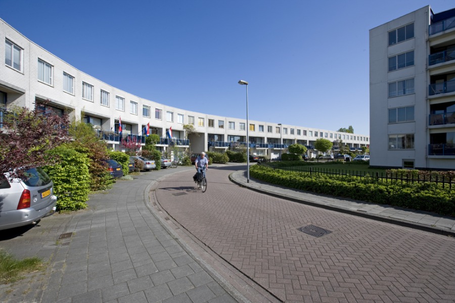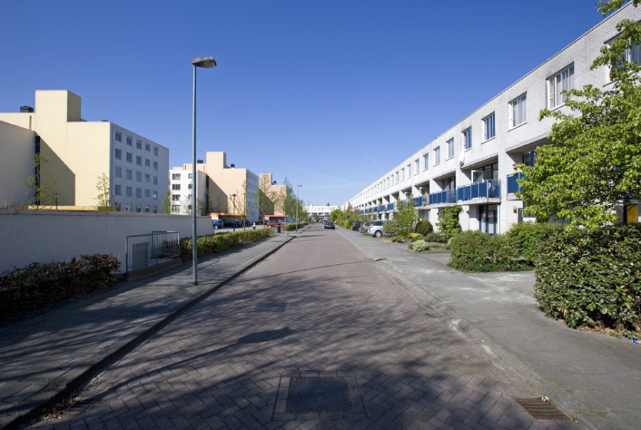 De rij eengezinswoningen ligt in het verlengde van de Dillenburglaan en buigt zich om de woontorens heen richting de Wilhelminakade. Van Meer ontwierp de woningen zo dat de belangrijke leefruimten zich op de eerste verdieping bevinden. Het balkon is als het ware een verlengstuk van de woonkamer en heeft dankzij de open ruimte tussen de woontorens tevens contact met het water. Aan de enigszins formele achterkant staat de woonkamer in verbinding met de tuin door middel van een wenteltrap. Van Meer hield in zijn ontwerp ook rekening met het toenemende autobezit van bewoners en zorgde voor genoeg parkeerruimte. Naast een parkeergarage is er plek voor de auto gecreëerd tussen groene hagen in de voortuintjes. Het resultaat is een autovrij straatbeeld, dat de gebogen strakke straatwand alleen maar meer tot zijn recht laat komen.