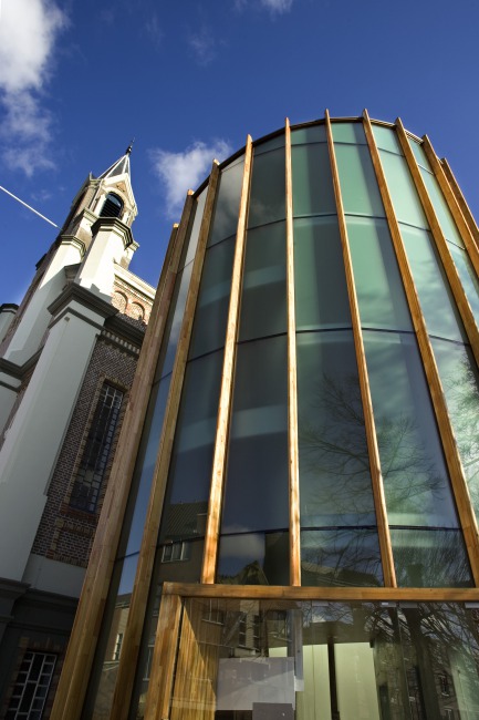 Het meest opvallend is het nieuwe entreepaviljoen dat de verschillende ruimtes ontsluit. In het glazen toegangsgebouw zijn de nieuwe trap, de lift en de toiletten ondergebracht. Staand naast de bestaande facade vormt deze transparante aanbouw een symbool van de toekomstgerichte dynamische verandering van het kerkgebouw. De kosterswoning is teruggebracht in de oorspronkelijke staat. Naast het restaureren van de kozijnen en de ramen, werd de kleurstelling van iedere kamer door middel van kleuronderzoek bepaald. Hiermee is de rijkdom van het historische gebouw weer zichtbaar gemaakt.